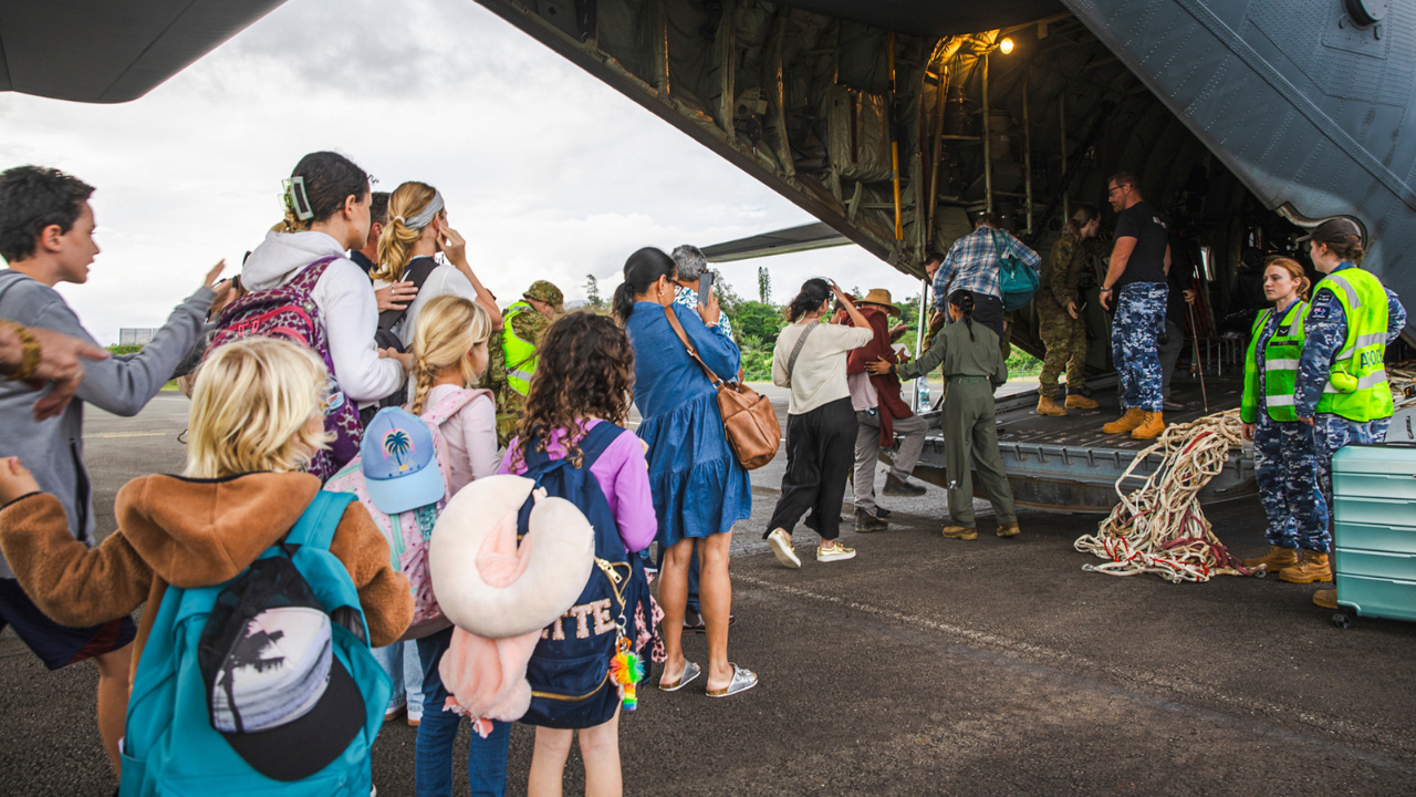 Hours later, a Royal Australian Air Force C-130 Hercules touched down in Nouméa. The plane can carry 124 passengers, according to the Defense Department.