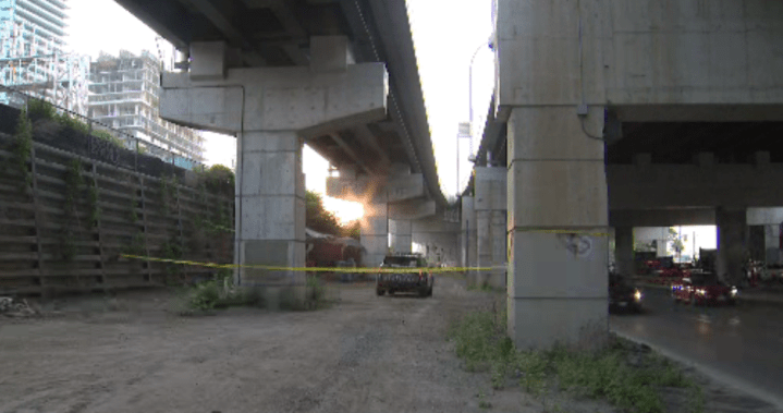 Police said the suspect vehicle stopped and the suspect got out and fled on foot, jumping off the Gardiner Expressway and falling onto Lake Shore Boulevard East below near Parliament Street.