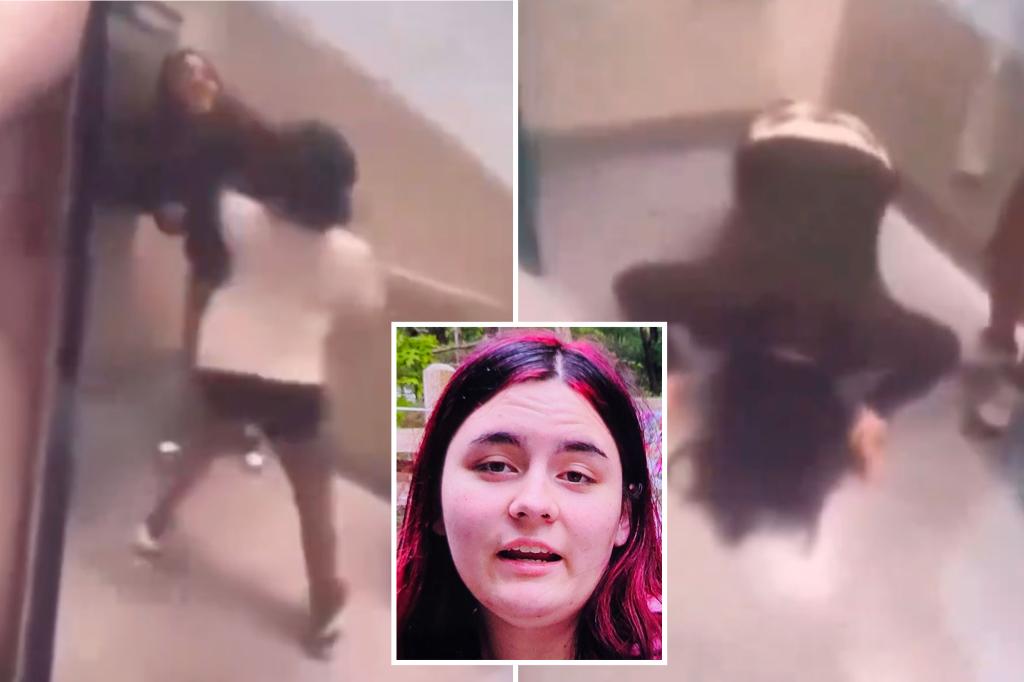 The video starts with Konton standing in a school hallway as her 13-year-old attacker faces her and a mob of students watch. The bully then slaps Konton before she’s led away by another student.