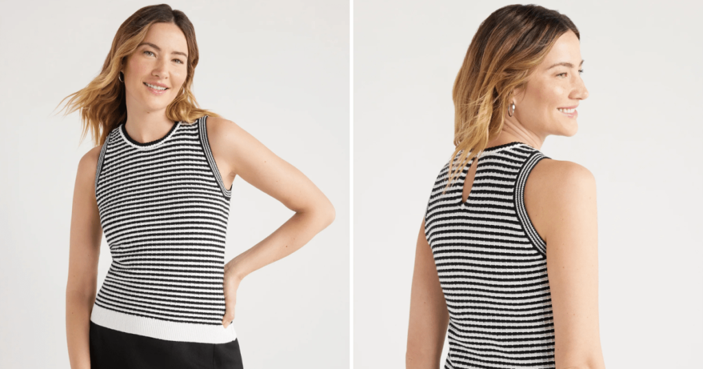 The Free Assembly Crochet Sweater Tank Top is just $20 at Walmart, and it’s a versatile option you can wear with just about anything. It’s a particularly great choice you can wear with black slacks, a pencil skirt, or other appropriate part of a work outfit.