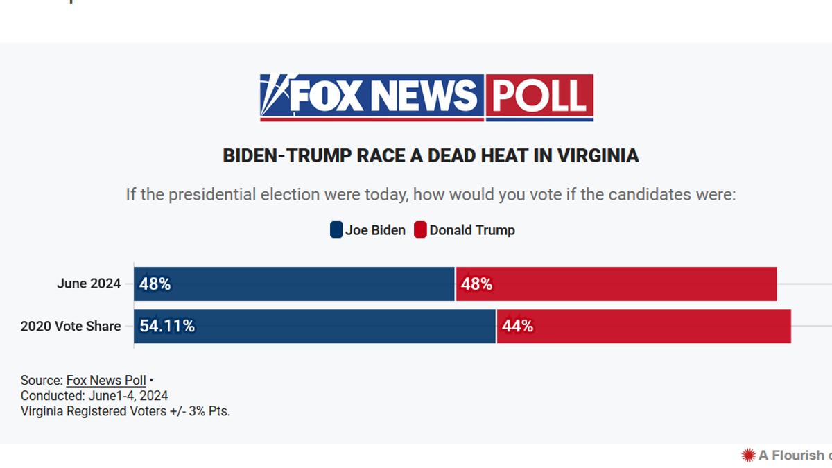 Youngkin emphasized that “we’re here in June and there’s still a lot of water to go under the bridge, but Virginia looks like it’s in play and that’s pretty exciting.”