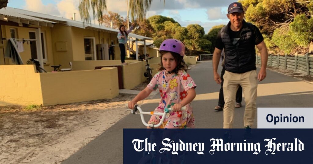 Brad Pettitt taught his daughter to ride without training wheels on Rottnest Island.