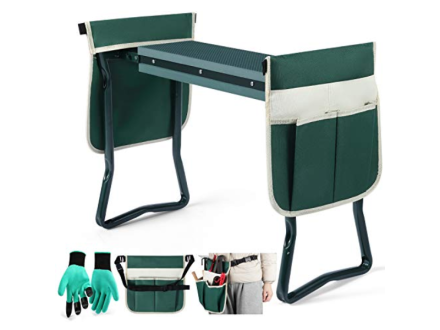 Made with a durable metal frame and soft EVA foam padding, this nifty stool is a back-saver, allowing you to kneel while weeding and planting. When you’re done, just flip it over and you’ve got a place to sit when you’re pruning rose bushes or harvesting the tomatoes. It comes with two pouches to hold trowels and a pair of gardening gloves.