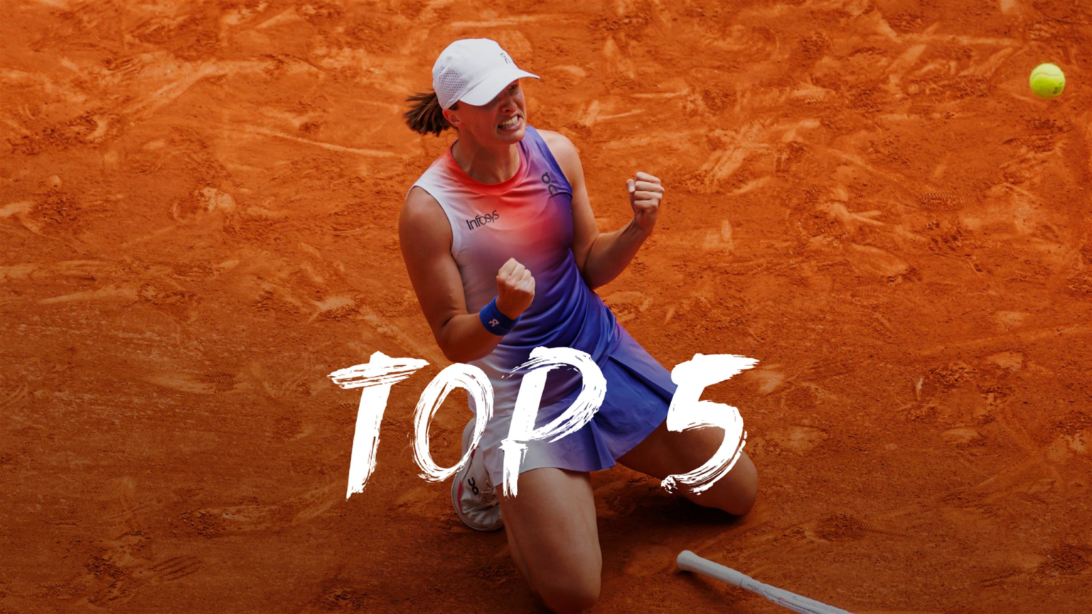 Watch the five best shots from 2024 French Open champion Iga Swiatek, as the 23-year-old Pole showcased her full arsenal on her way to winnning a third successive title at Roland Garros. The world No.1 claimed her fourth win in Paris and her fifth Grand Slam triumph overall in the final, thanks to a dominant 6-2 6-1 victory over Italian 12th seed Jasmine Paolini.
