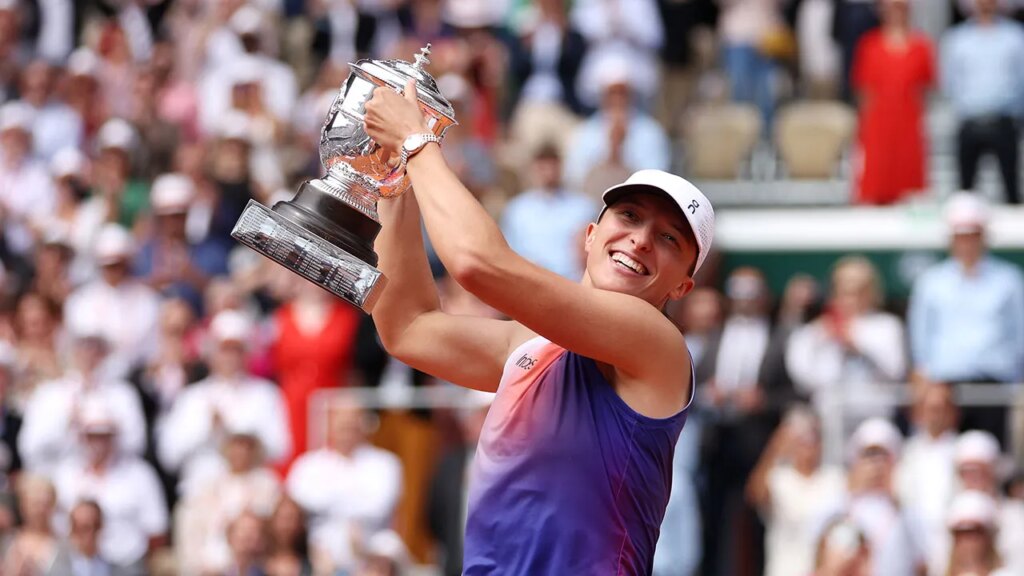 Top ranked women’s tennis pro Iga Swiatek overpowered Italy’s Jasmine Paolini in just a little over an hour to win the French Open on Saturday, marking her third-straight win at Roland Garros.Â