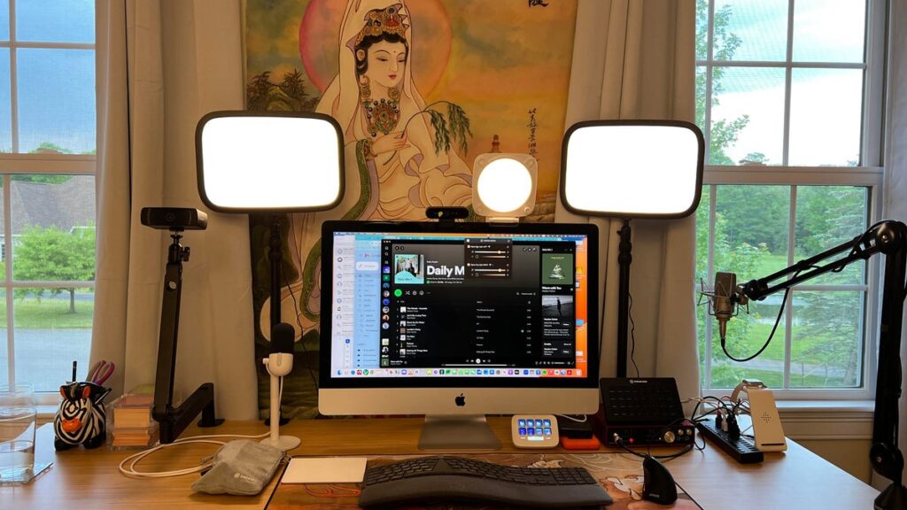 Hi there. So you want to set up your youtube office? Right. Let’s chat about that. I’ve been through this journey and I’ve got some tips that might save you time and money and first things first, don’t feel like you need to buy everything all at once. What you want to do instead is start small and then upgrade as you go. Trust me, it’s way more sustainable that way. Let’s talk of all cameras. I started with my smartphone and honestly, it’s still my go to for on the go filming. I use an iphone 13 Pro Max with plenty of storage. It’s great for capturing those spontaneous moments. Now, audio is super important. I love these wireless Lavaliere Mics. I found on Amazon for about $40. They’re perfect for travel vlogging and interviews. Just clip one on yourself and the other one on your guest and you’re good to go by the way. There’s something I really want to mention when it comes to audio, always need a backup. It’s a must have audio tends to fail. Even if you’re using these Bluetooth Lavale Mics, they can lose connection and what you end up with is just empty and zero audio. So an alternative setup that I really enjoy using these days is to record raw video on my smartphone, which I can improve using A I later on such as removing background noise. On top of that, I will handhold either a another smartphone as a backup recording device. I can simply use the voice recording feature or if you want an upgrade, I recommend the Zoom Recorder. It’s a bit of an investment, but I think it’s well worth it. For good audio lighting can make a huge difference. I use a mini led video light when I’m out and about it’s rechargeable, powerful and only costs about $20. Perfect for those evening shots or dark environments and for my whole office set up, I’ve got a Sony Zve one camera with a couple of VX lenses, but don’t worry if that’s out of your budget right now. I started off with a Sony 8 6400 mirrorless camera. Any EIGA lens which served me well for years for audio at home, I use Newman TLM 103 microphone for podcasts and live streams for camera recording. I just attach a rote mic to my camera. Simple and effective. Now, lighting at home is a bit more elaborate. I use Elgato key lights attached to my desk for Zoom calls and also live streams. They are super adjustable and help reduce eye fatigue during law recording sessions. And there is a fun tip. Try some led lights to add personality to your background. Go make some affordable options that can really transform your space. Lastly, if you want to level up your scripting game and consider a teleprompter. I recently started using Garos Teleprompter and it’s been a game changer. It’s so easy to set up and use even if you’re new to it. But remember all this gear is just tools to help you create. The most important thing is to have fun and be yourself and keep on creating. You’ve got this can’t wait to see what you come up with. Please share with me at Face world everywhere you find me.