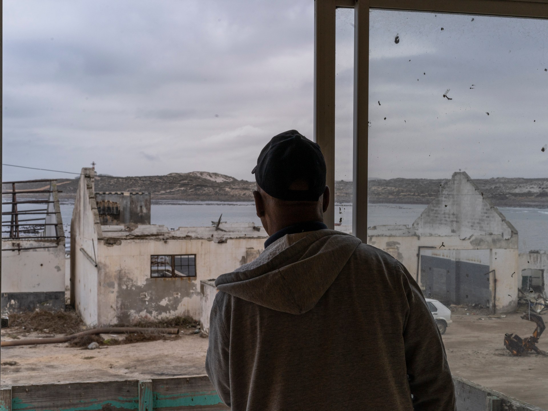 Across the road from the ruins, five orange-coloured boats lie in front of a two-storey, weather-worn building, with a sign that reads: “Hondeklip Bay Small Vessel Safety Monitoring Center”, or VMS, where Rulph spends most of his days.