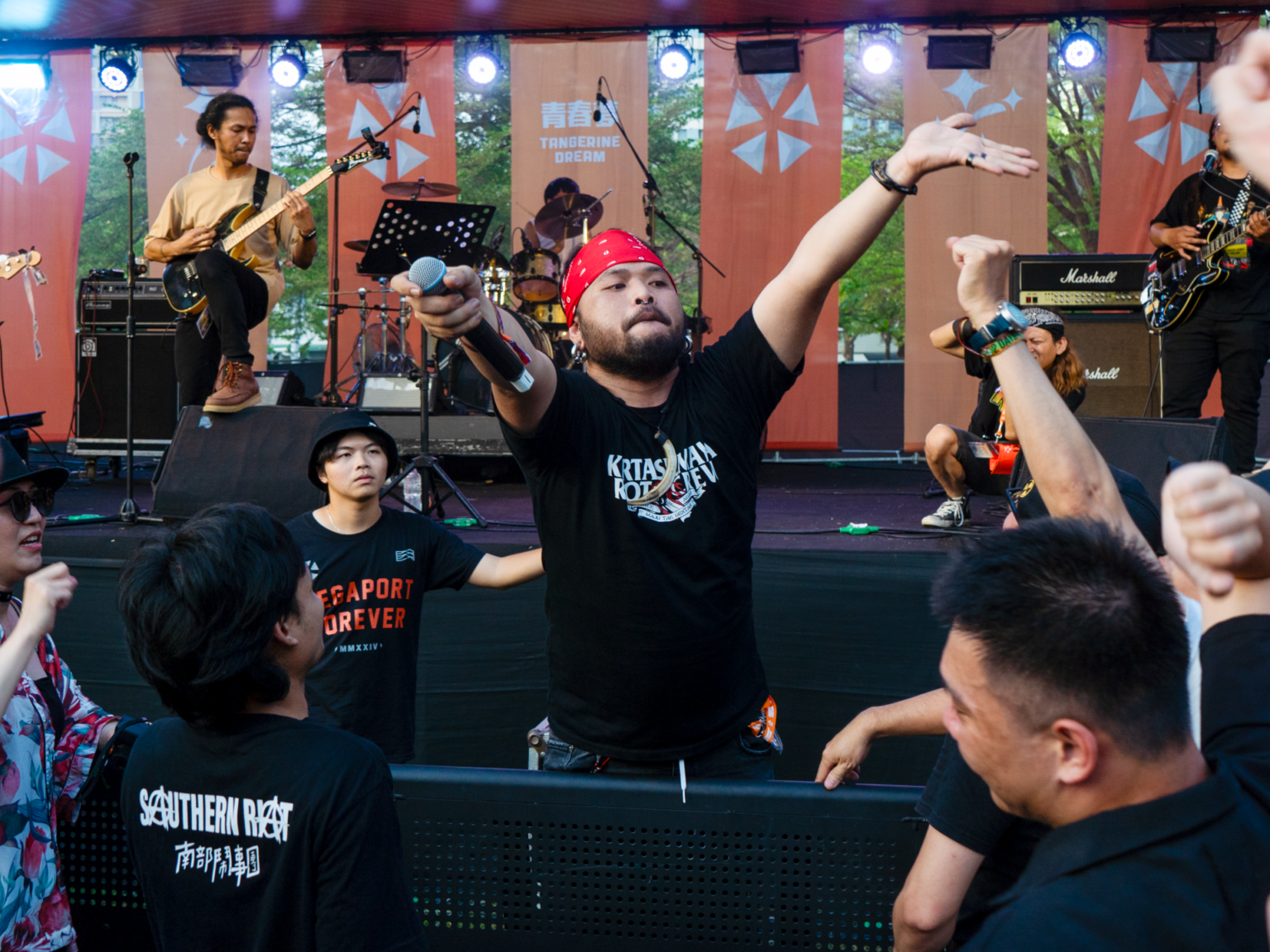 Back in Kaohsiung, Rudi steps towards the crowd, letting audience members sing with him as Southern Riot finishes their set.