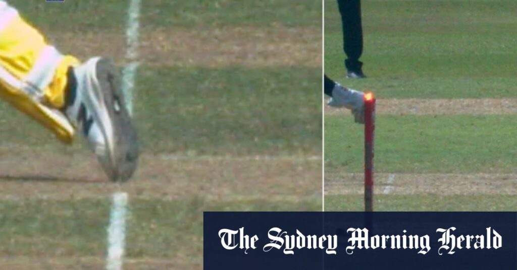 Josh Inglis stays at the crease as the third umpire rules he had part of his foot behind the line.