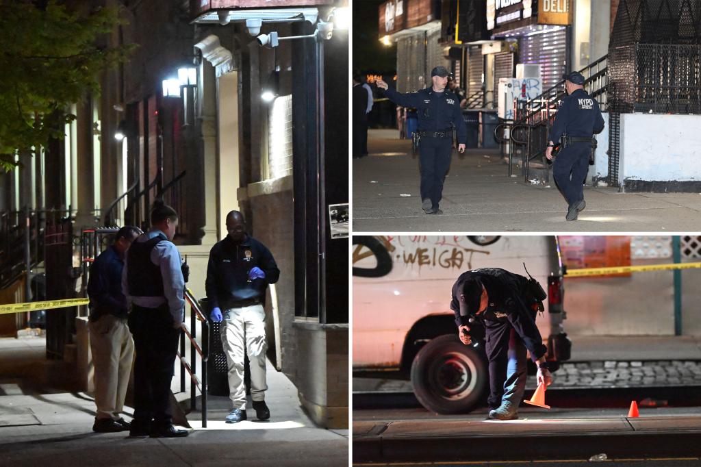 Responding officers found one of the alleged perps — a 23-year-old man — suffering from a gunshot wound to his left foot at the scene, according to sources.