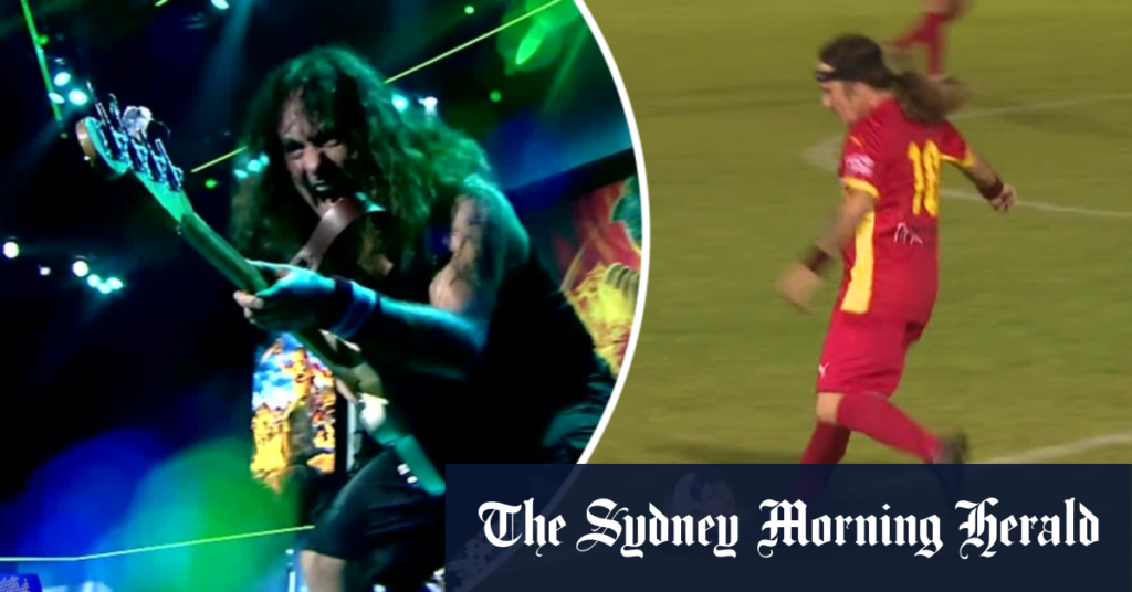Iron Maiden bassist plays football friendly in Perth