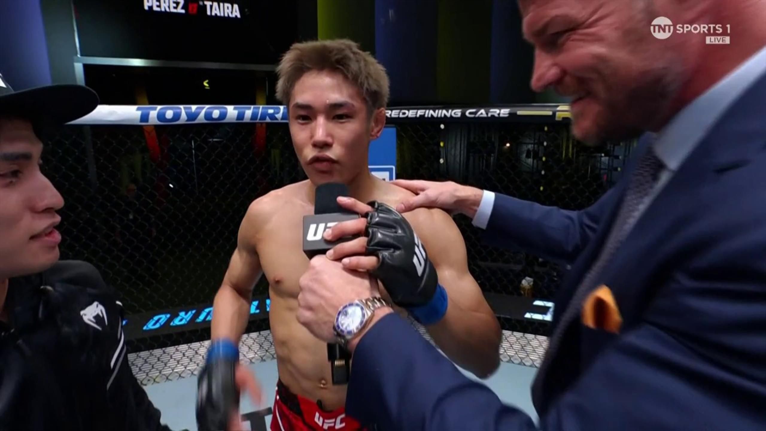 “Japanu0027s Tatsuro Taira delivered an impressive performance to defeat Californiau0027s Alex Perez on Saturday evening, moving to 16-0 in his career. The 24-year-old earned Performance of the Night honours with his second round takedown that left his opponent injured and unable to continue. Perez had entered the fight looking to build momentum towards a title challenge but was stopped cold.”