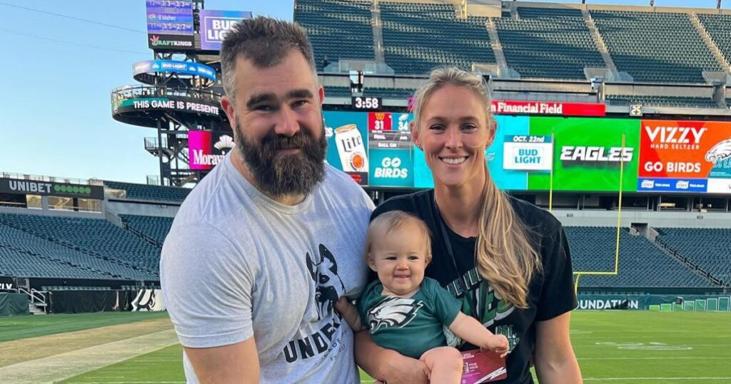 Jason Kelce and wife Kylie Kelce’s love for the Philadelphia Eagles runs deep — and they are passing it down to the next generation.