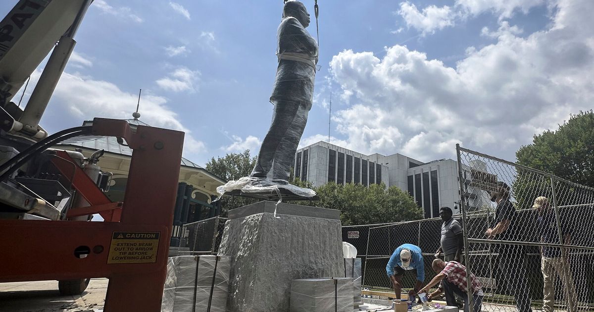 DECATUR, Ga. (AP) — A large bronze statue of the late civil rights icon leader and Georgia congressman John Lewis was installed Friday, at the very spot where a contentious monument to the confederacy stood for more than 110 years in the town square before it was dismantled in 2020.