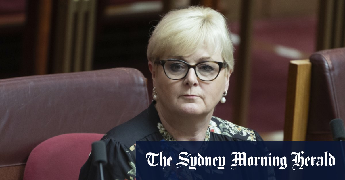 Liberal Senator Wendy Askew is sworn in at Parliament House in Canberra in 2019.Credit: Alex Ellinghausen