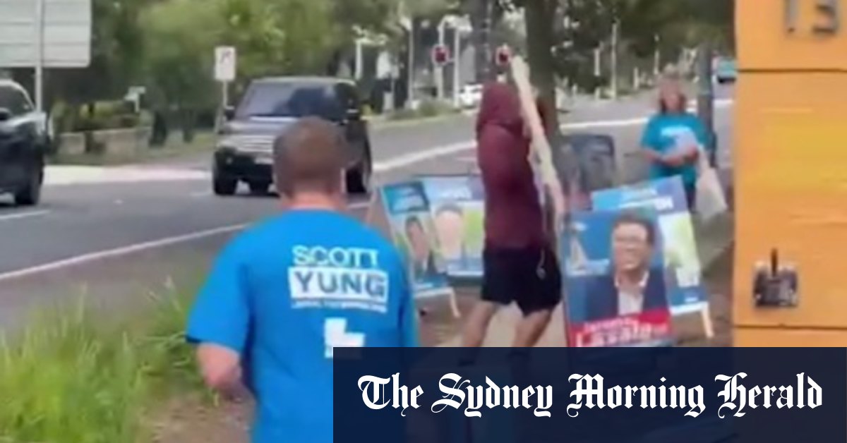 A man has been charged after he allegedly kicked several liberal party signs outside a polling booth in Sydney.