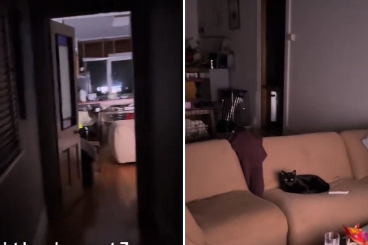 In last week’s video, Maguire filmed himself walking toward the noise. The entire hallway was dark. But the noise of “someone talking really loudly,” and a light at the end of the hallway, guided him to the living room, where he found his black cat sitting on the couch next to the television remote.