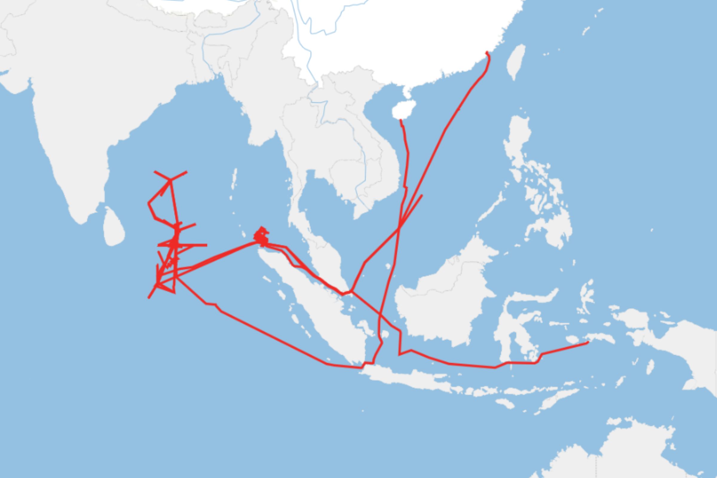 As of Sunday, it was underway in the Andaman Sea, which is a smaller sea in the northeastern part of the Indian Ocean bordering Myanmar and Thailand to the east. Global Fishing Watch suggests it was operating off the Andaman and Nicobar Islands, just outside India’s exclusive economic zone.
