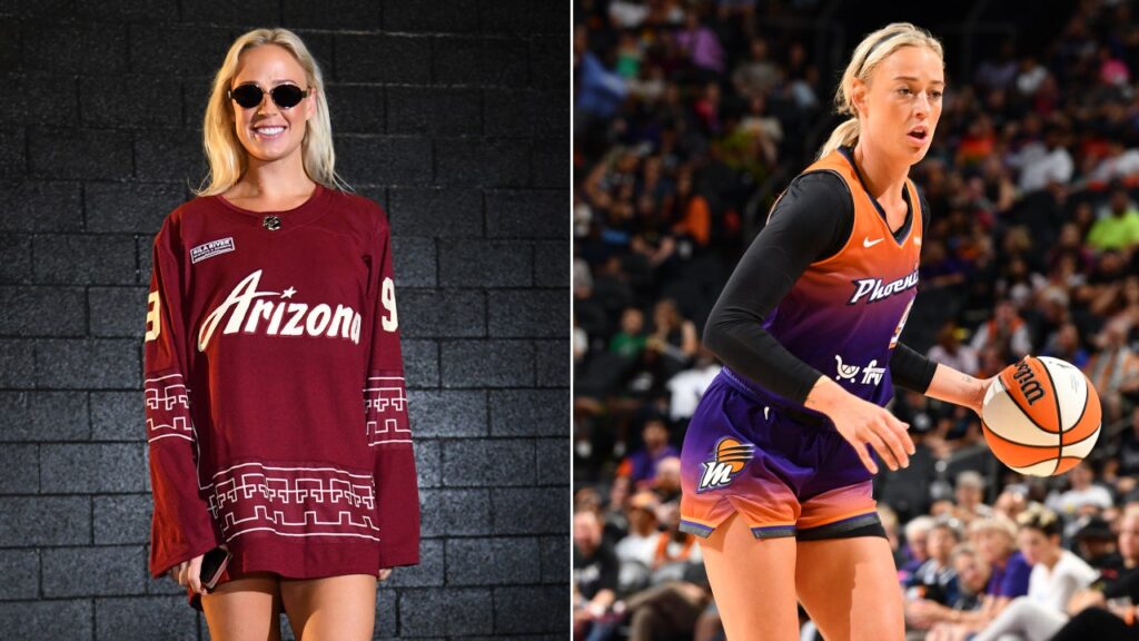 Phoenix Mercury star Sophie Cunningham turned heads on Sunday night as she entered the Footprint Arena in an oversized Arizona Coyotes jersey before a game against the Seattle Storm.