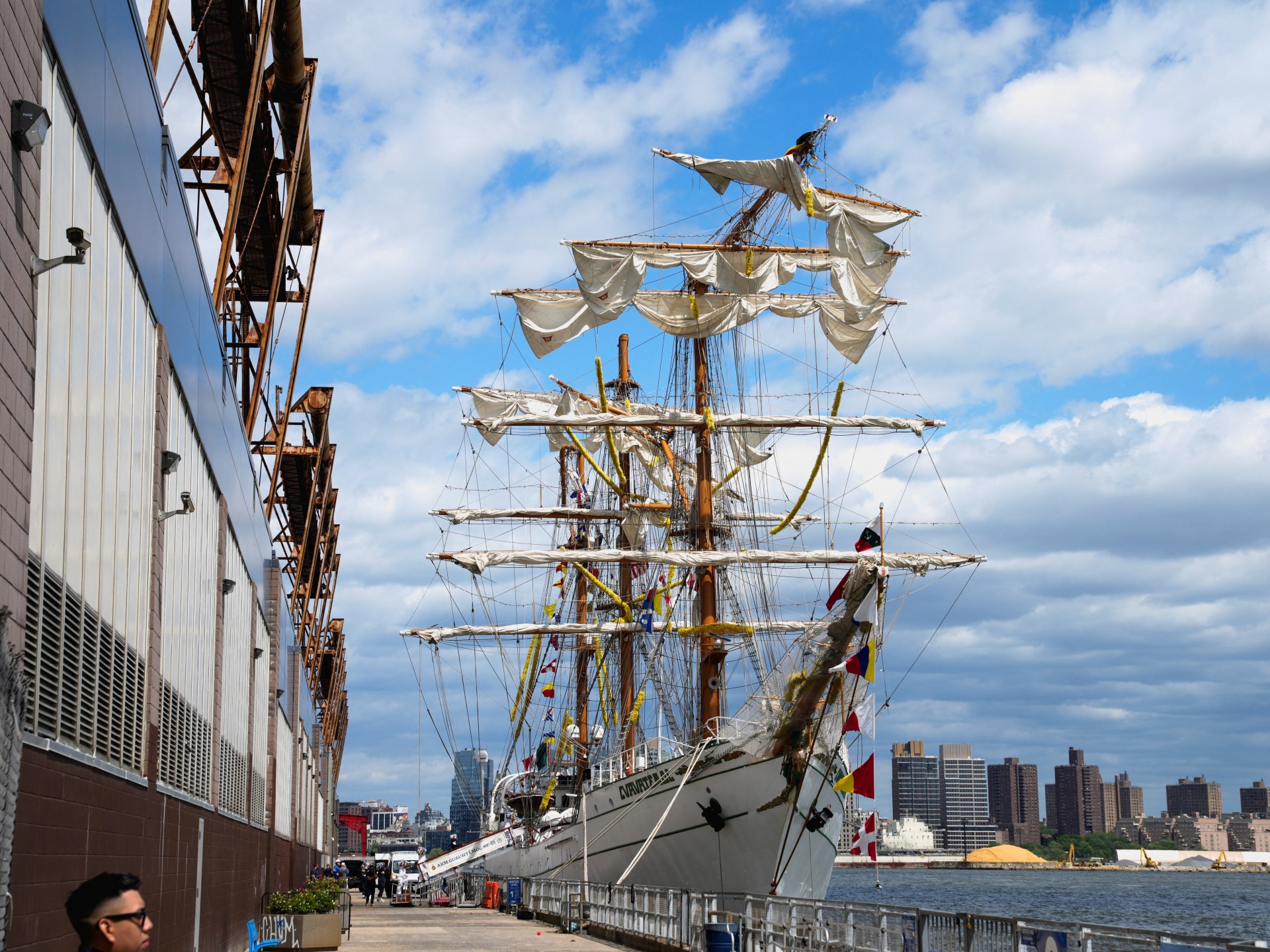 The ship was parked at Pier 17 in Manhattan, right below the Brooklyn Bridge