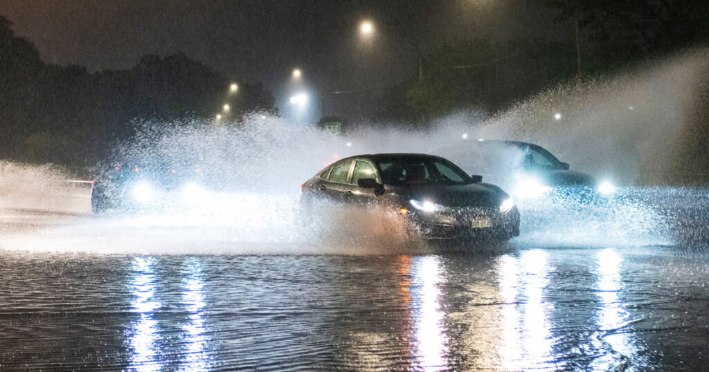 Police in Joliet warned of downed power lines and trees, with many roads blocked. Motorists were urged to use “extreme caution.”
