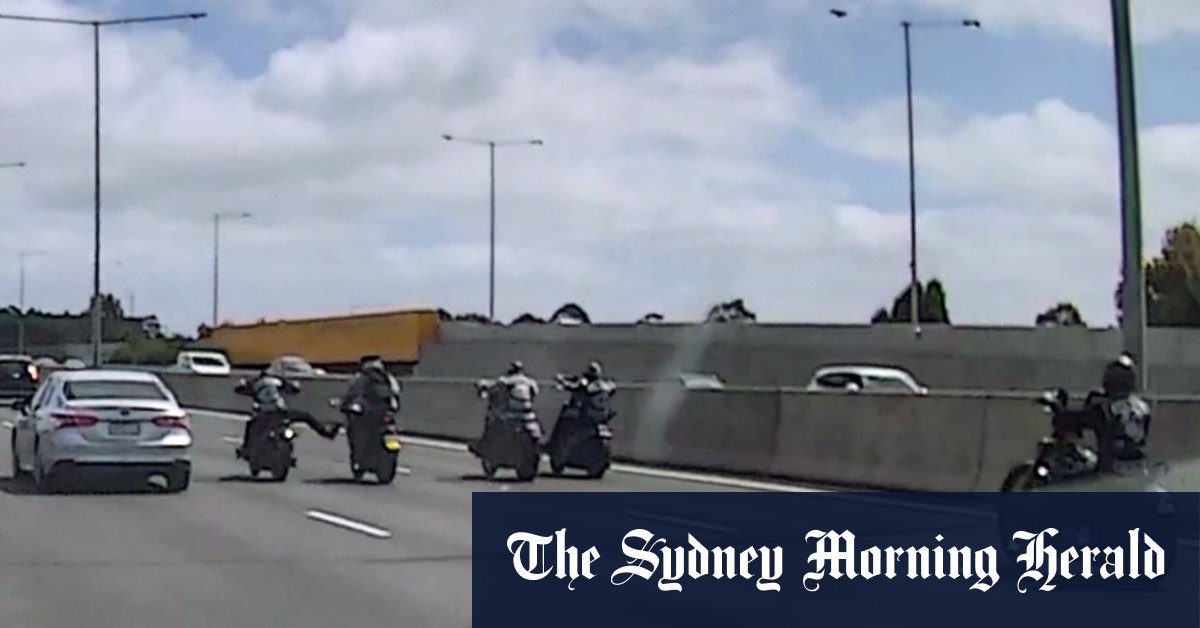 Dashcam footage shows the unidentified L-plate motorcyclist being surrounded by five members of the Mongols travelling at speed. One member of the gang tries to punch and kick the L-plater as they ride alongside each other.