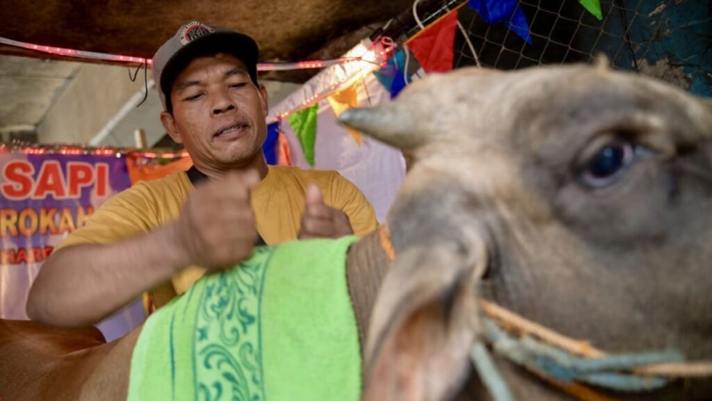 Sumarwan says he is one of only two people in this area of North Jakarta able to give cattle massages for the major holiday in the Islamic calendar.