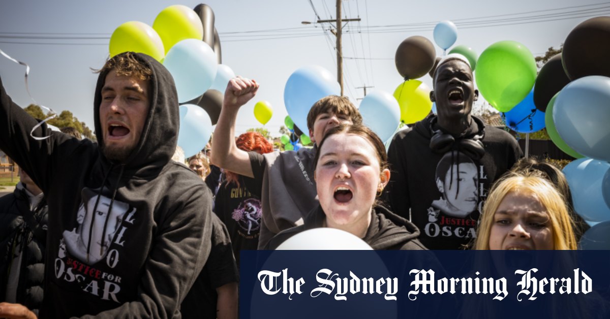 Attendees wearing hoodies bearing Oscar’s face and the words “Stop the violence” marched from the shopping centre to Melton Police Station as they called for an end to knife violence and a reformed criminal justice system.