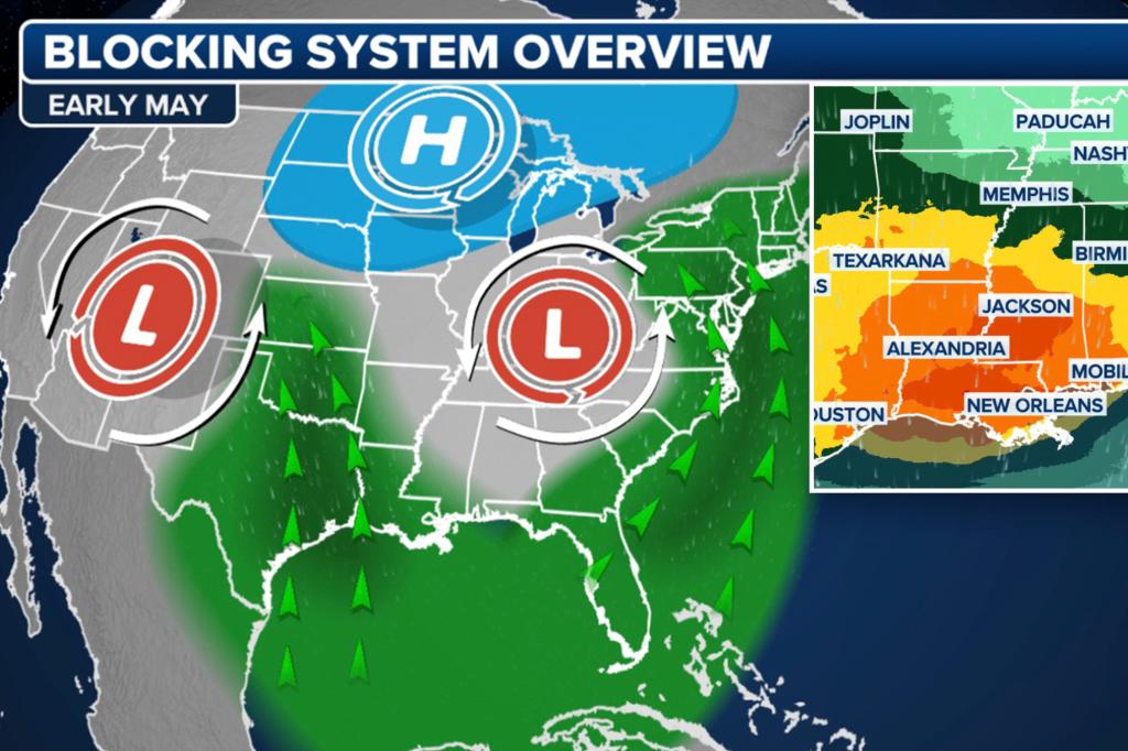 A rather unusual weather pattern for early May is setting up across the US, and forecasters warn that it will lead to a stagnant pattern with prolonged periods of warmth in some areas and steady rain in others.