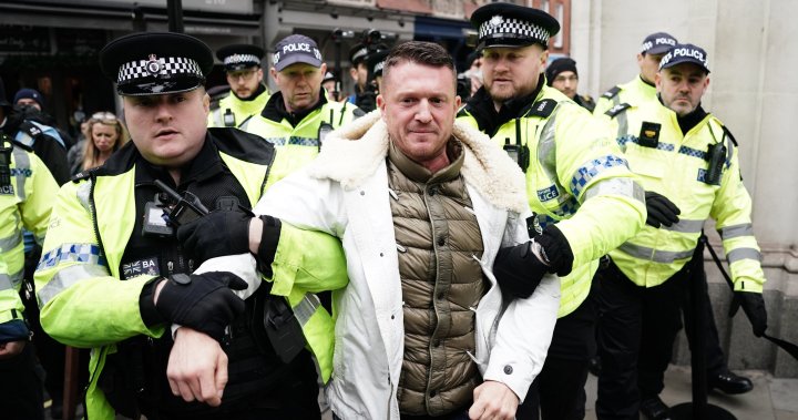 Robinson was arrested in Calgary on Monday over an “outstanding immigration warrant,” according to a video he posted on his social media account. He has been convicted in the United Kingdom of offences including contempt of court and assault.
