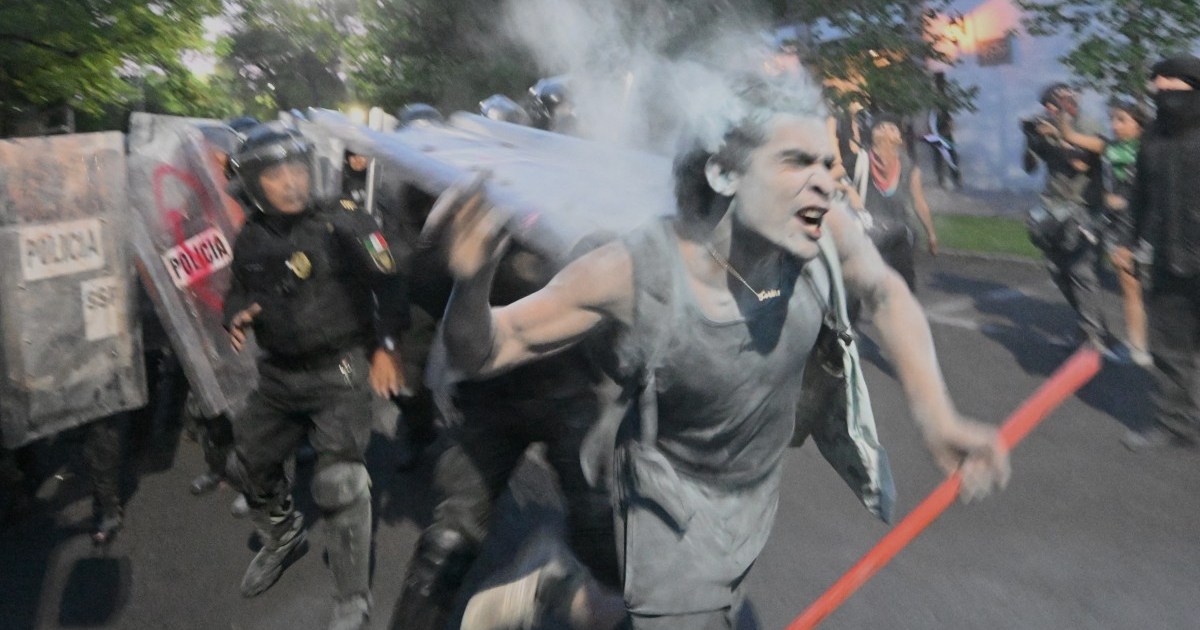 Protesters covered their faces and threw stones at riot police blocking their path to the complex in the city’s Lomas de Chapultepec neighbourhood.