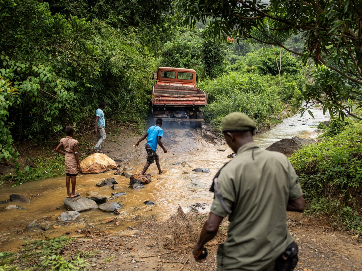 Jusu’s words became a reality no more than 30 minutes into the rangers’ ascent, when a pile of fresh sand on the riverbank indicated that mining had just taken place.