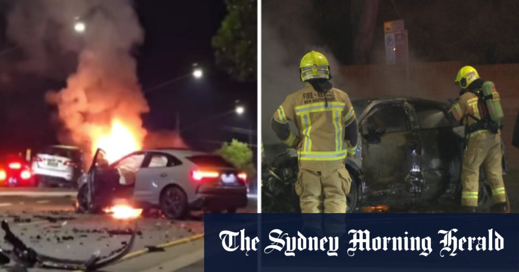 Police are searching for three men who crashed a luxury car at Padstow in Sydney’s south-west and then left the scene, leaving a 39-year-old man in hospital fighting for life.
