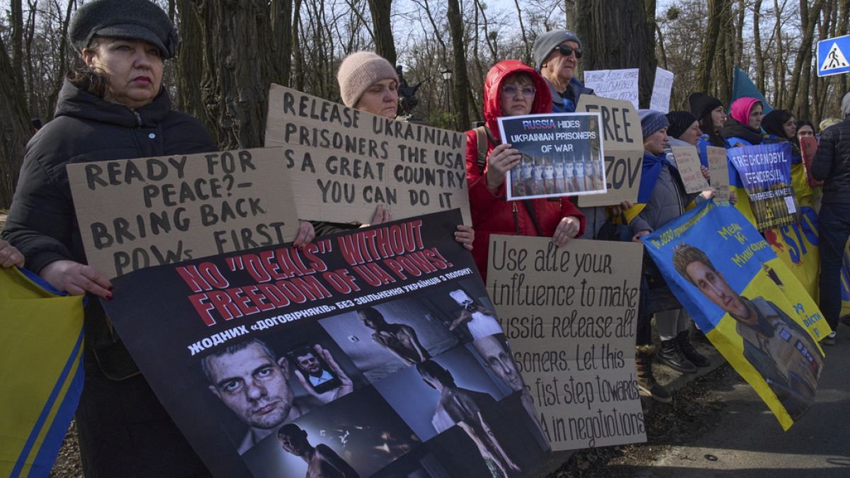 Protesters rallied outside the US embassy in Kyiv reiterating that one of the points of peace is the exchange of prisoners of war.