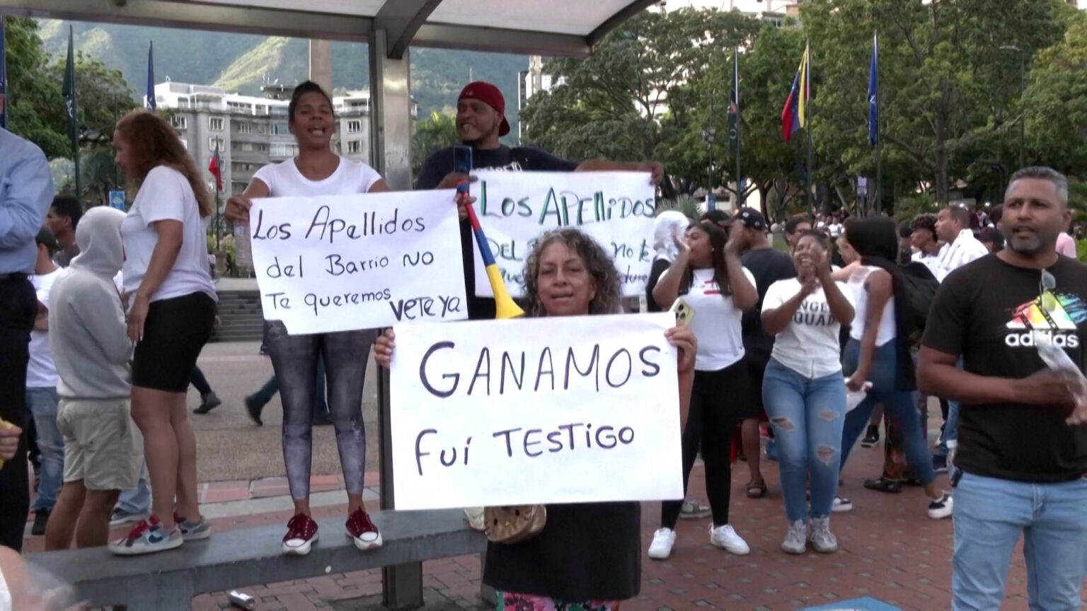 Protesters in Venezuela toppled a statue of former president Hugo Chavez while others faced tear gas fired by police, as demonstrations erupted over the victory declared for Nicolas Maduro in the disputed presidential election.