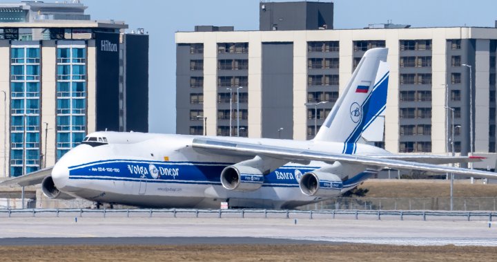 The Russian-registered Antonov AN-124 is owned by the firm Volga-Dneper, which Canada has sanctioned. It is one of the largest aircraft in the world, and Ottawa fears Russia could use it to deliver military supplies in its invasion of Ukraine.