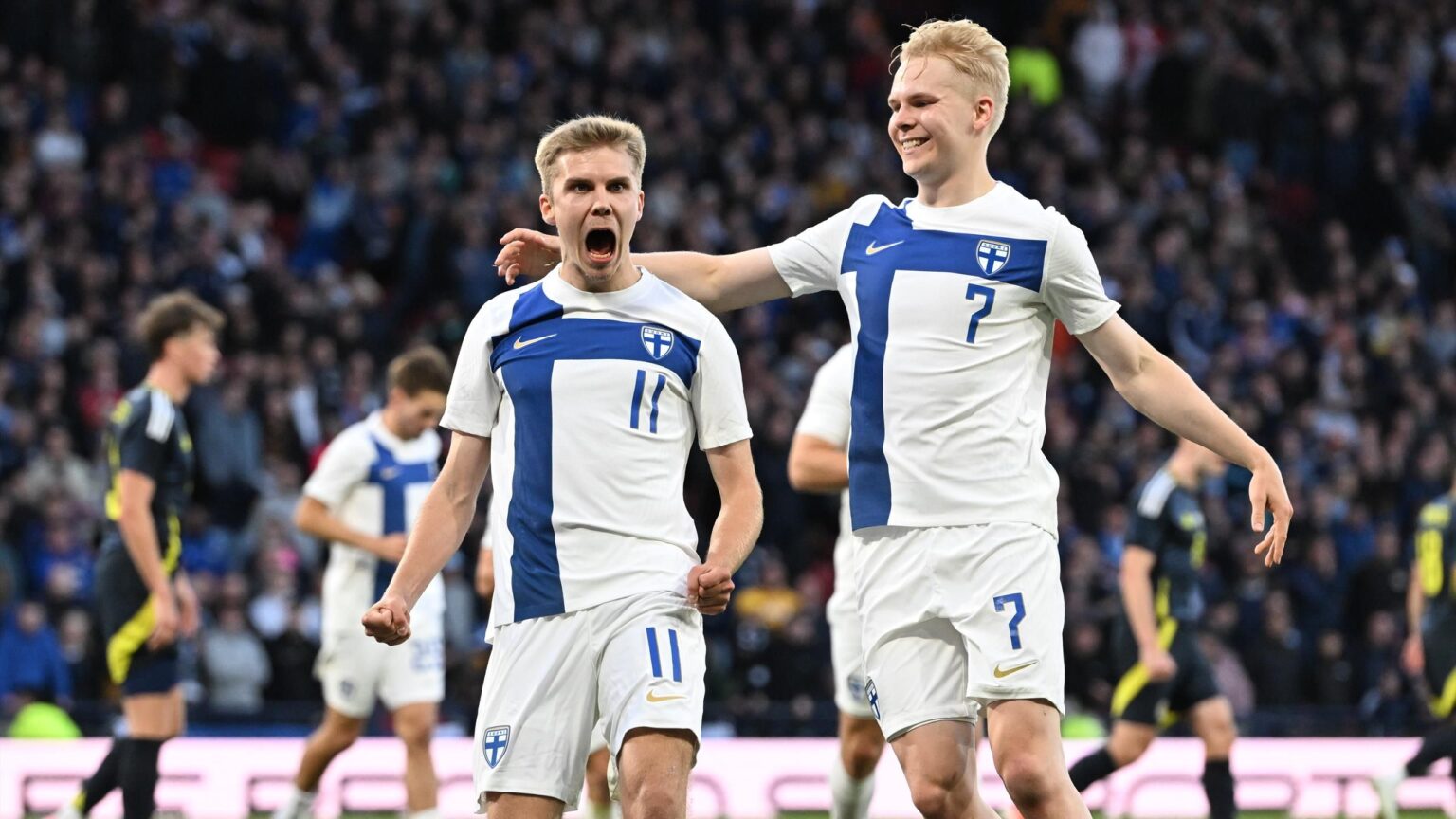 72′ – GOAL!!! SCOTLAND 2-1 FINLAND (KALLMAN): The visitors pull one back inside the final 20 minutes! Kallman, just on as a substitute, is unmarked to glance home Antman’s deep cross. Following a VAR review, the goal stands.
