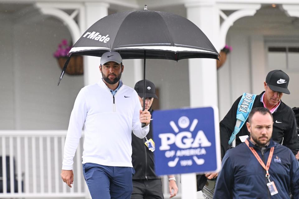 By 9:15 a.m., Scheffler had been released from jail and arrived at Valhalla. He tied off less than an hour later and birdied the first hole. (Tee times were delayed by almost 90 minutes Friday due to the traffic accident.)