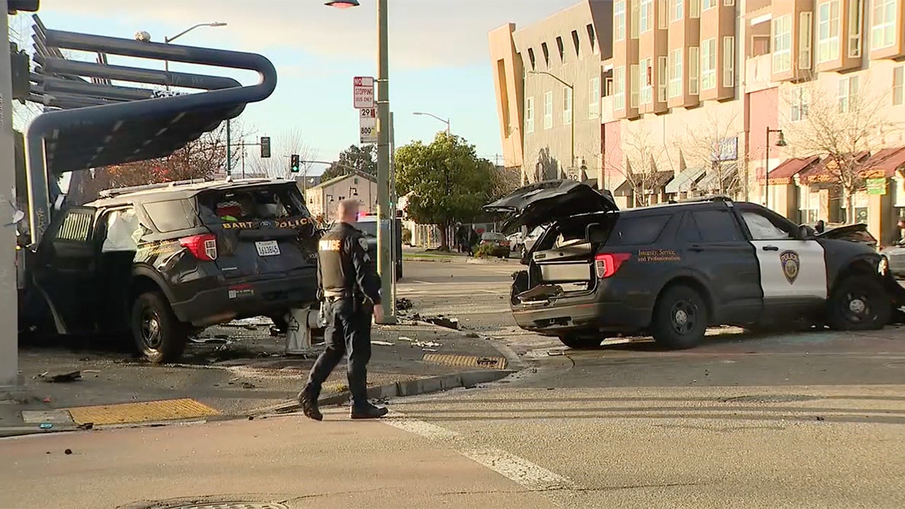 Authorities were alerted to the situation at around 2:45 p.m. local time. According to Oakland police, two police cars belonging to the Bay Area Rapid Transit (BART) Police Department were involved in the crash.