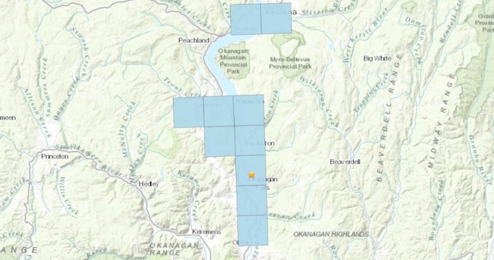 According to Earthquakes Canada, the epicentre of the 2.6-magnitude quake was around 12 km southeast of Penticton,, B.C.