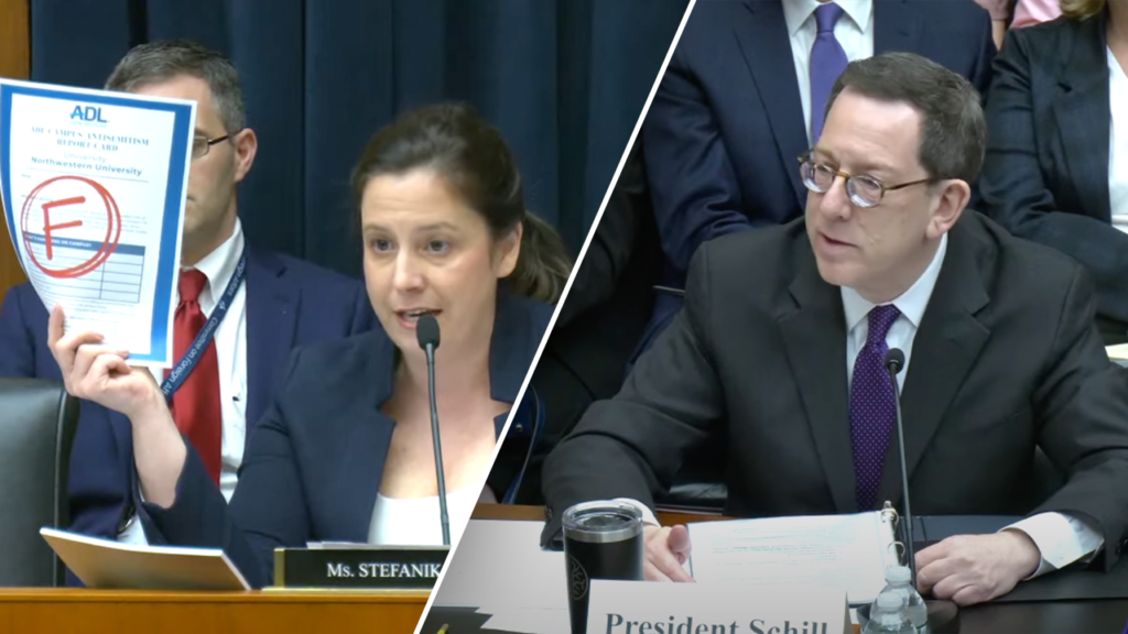 Stefanik focused her initial lines of questioning at Schill, noting the elite university located outside of Chicago received an F grade in the Anti-Defamation League’s Campus Antisemitism Report Card this year. Northwestern was the only university in the nation to receive a downgraded score in the report card.Â