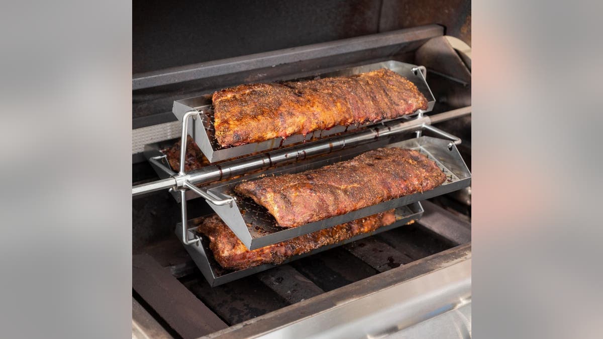 You can cook ribs and other meats straight on your grill rack, of course, but to get an even cook, a rotisserie tray can help. The BBQ Guys created the idea of a multi-rack rotisserie, so you can cook all your favorites at once. You can also buy the BBQ Guys Rotisserie through Amazon.