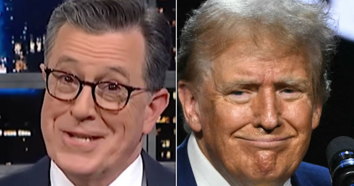 “He’s gonna have to change one of his signature brags,” Colbert noted, then played a clip of Trump boasting he could shoot someone on Fifth Avenue and not lose any voters.