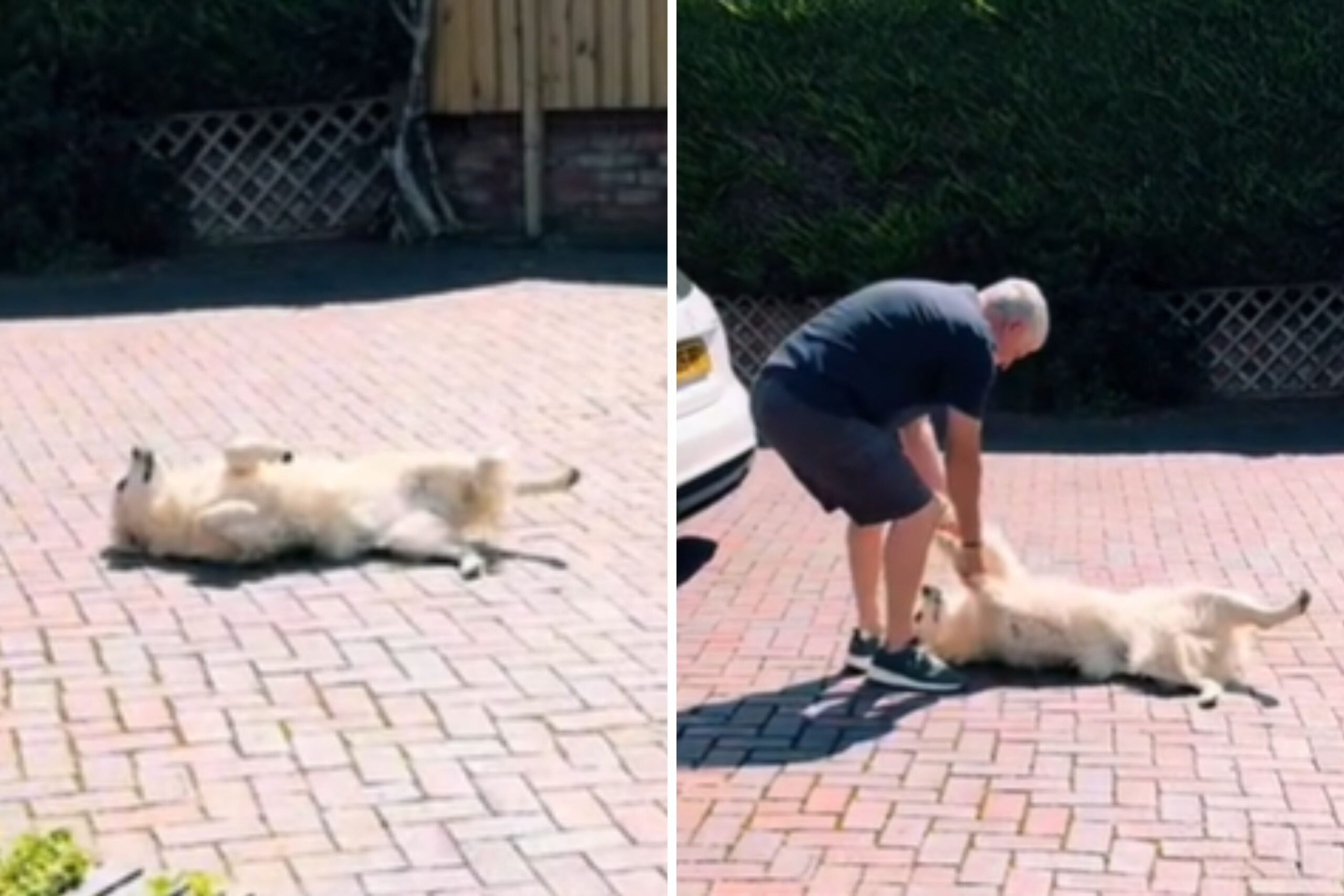 Shared to Parry’s account @elinorparry4004 on August 9, the clip shows Molly lying on her back in the sunshine, wagging her tail and refusing to get up, even as Parry’s father tries coaxing her into the car.
