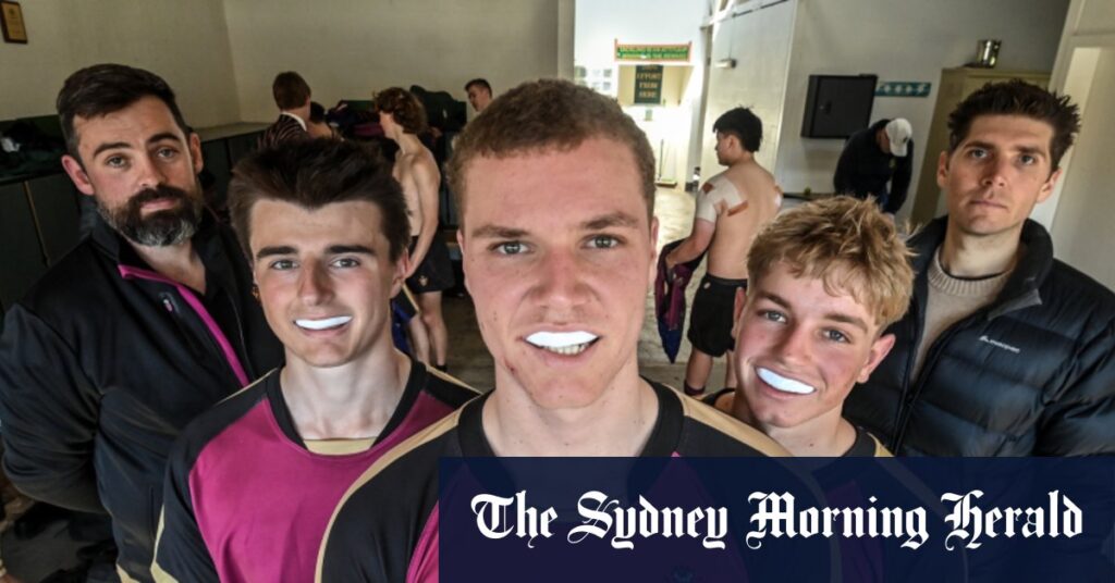 Haileybury’s rugby players have been wearing customised mouthguards since their season began in April.Credit: Justin McManus