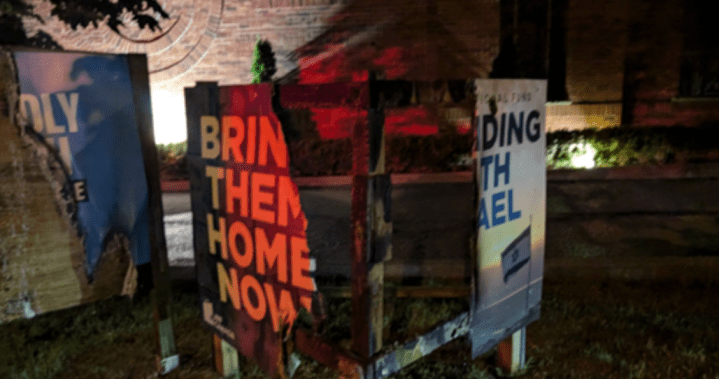 Among the alleged targets were signs outside synagogues with the Bring Them Home Now slogan that refers to hostages kidnapped and taken to Gaza during the Oct. 7, 2023 attack on Israel.