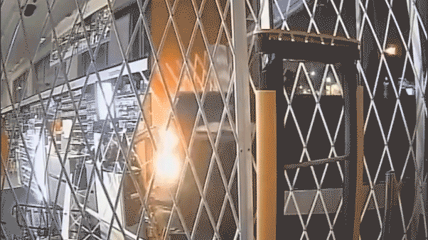 Video of the attempted heist, posted by the Pierce County Sheriff’s Office, shows the stolen truck repeatedly ramming into the storefront, smashing through a security gate before two suspects jump out and attach a chain to the ATM inside.Â
