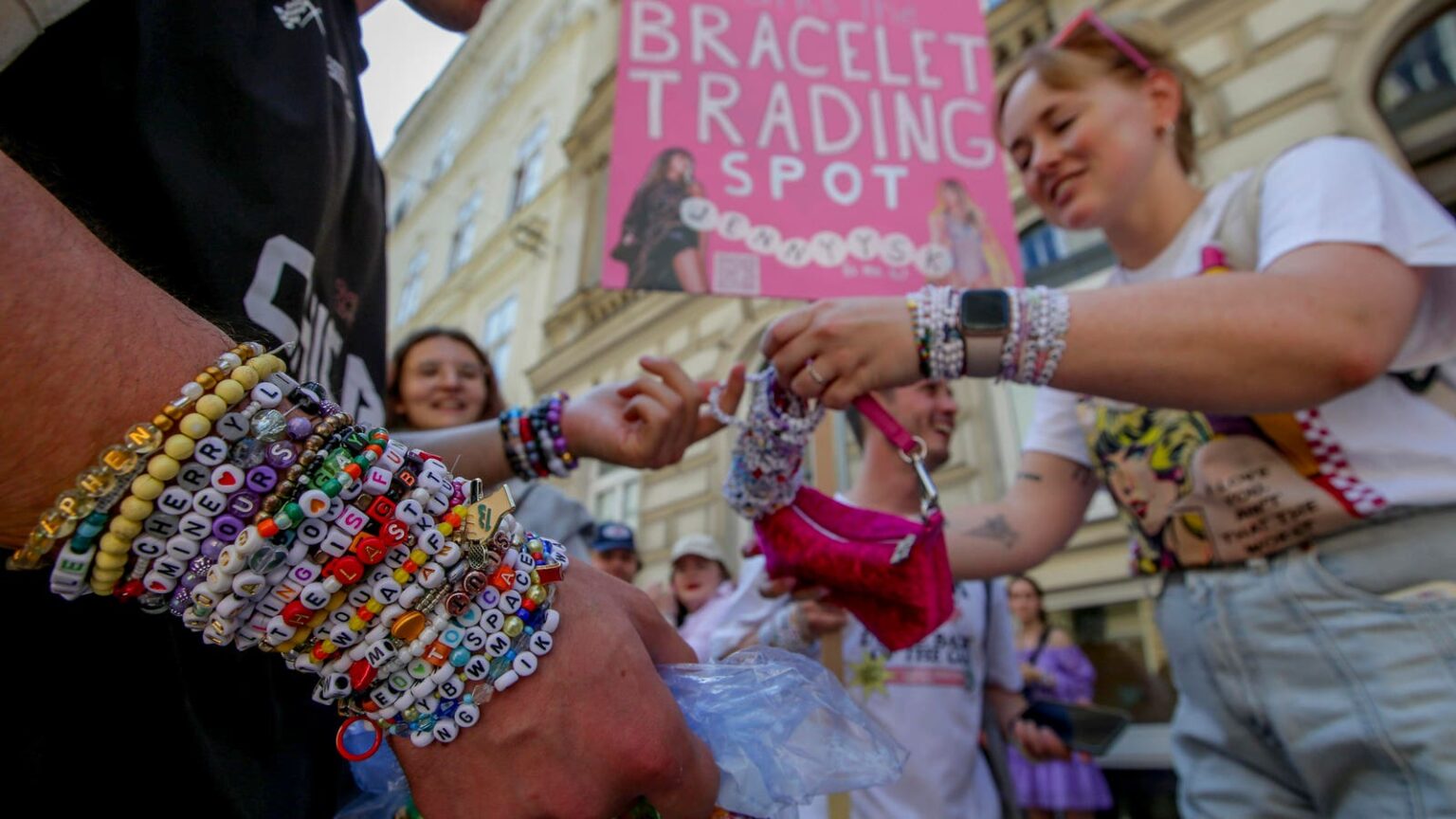 Swifties also gathered on the Corneliusgasse street in Vienna—which bears resemblance to “Cornelia Street,” a Swift song named after a street in New York—where they gathered to trade friendship bracelets, a tradition observed by fans at Eras Tour shows, and hang them on trees.