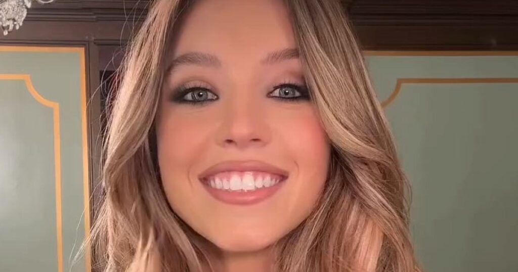 For glam, the actress stunned with blended eyeshadow and black smoked out liner that made her blue eyes pop. She also wore a touch of mascara and lined, pink lips. Sweeney’s honey blonde hair was parted down the middle and styled in soft curls.
