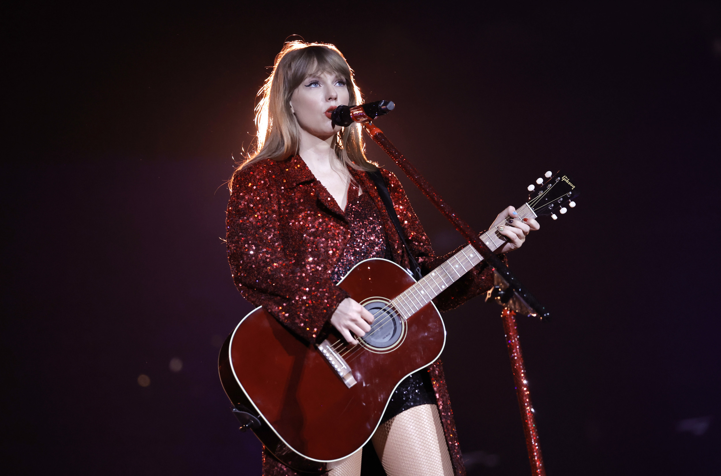 The singer-songwriter has used a variety of guitars over the years, but the Gibson acoustic guitar is her instrument of choice while on her record-breaking tour. The guitars are often customized to match the musical “eras” she is referencing during the show.